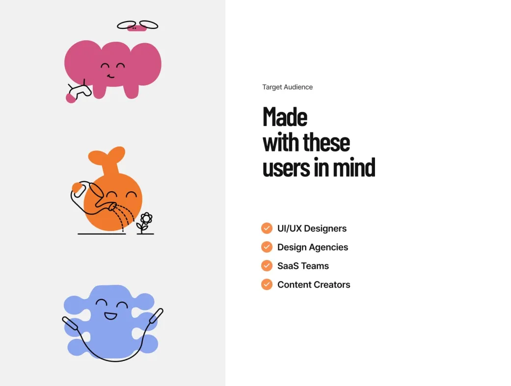 این ایلوستریشنها برای طراحان حرفهای و مبتدیان مناسب است. طراحان میتوانند از این مجموعه در پروژههای خود استفاده کنند، در حالی که والدین و آموزگاران نیز میتوانند برای جلب توجه کودکان به یادگیری، از این کاراکترها بهرهبرداری کنند. همچنین، در برنامههای بازیمحور میتوانند به عنوان شخصیتهای اصلی یا فرعی به کار روند.