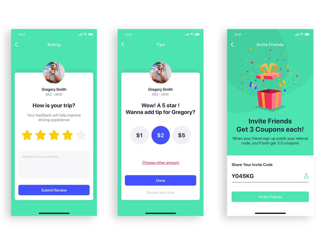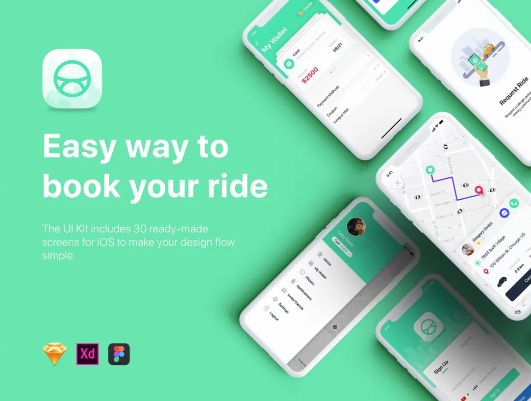کیت UI موبایل تاکسی Aber ایدهآل برای توسعه اپهای حملونقل مانند تاکسی آنلاین، رزرو خودرو و مسیریابی است. میتوانید آن را در پروژههای iOS برای iPhone X و بالاتر استفاده کنید و با سفارشیسازی آسان، به نیازهای کاربران ایرانی تطبیق دهید. این کیت برای استودیوهای طراحی و فریلنسرهایی که به دنبال قالب UI موبایل تاکسی میگردند، عالی عمل میکند.