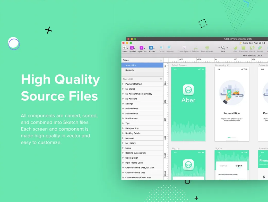 این کیت با طراحی مدرن و انعطافپذیر، مزایای زیادی برای طراحان UI/UX ارائه میدهد. از جمله سازماندهی دقیق عناصر در پوشهها که ویرایش سریع را ممکن میسازد، تا سازگاری کامل با ابزارهای محبوب طراحی. استفاده از کیت UI موبایل تاکسی Aber نه تنها سرعت کار را افزایش میدهد، بلکه کیفیت نهایی اپلیکیشن را تضمین میکند.