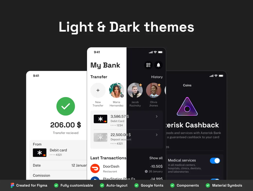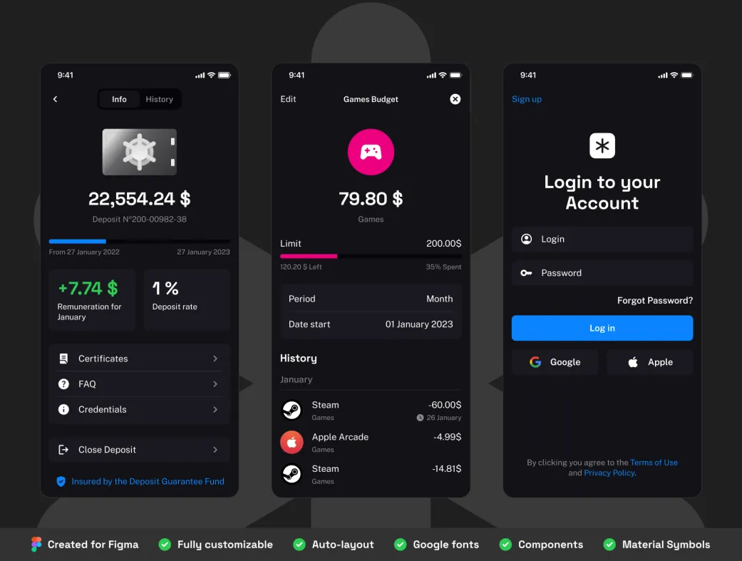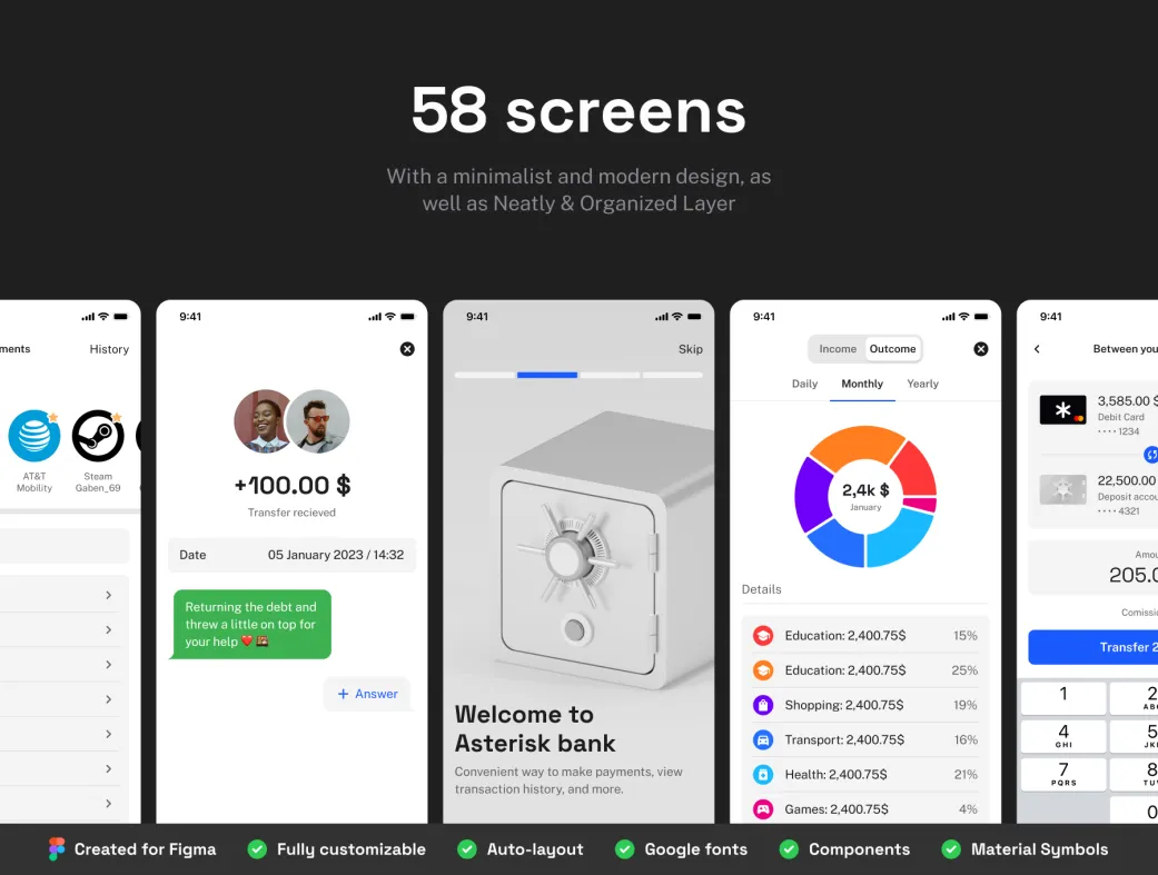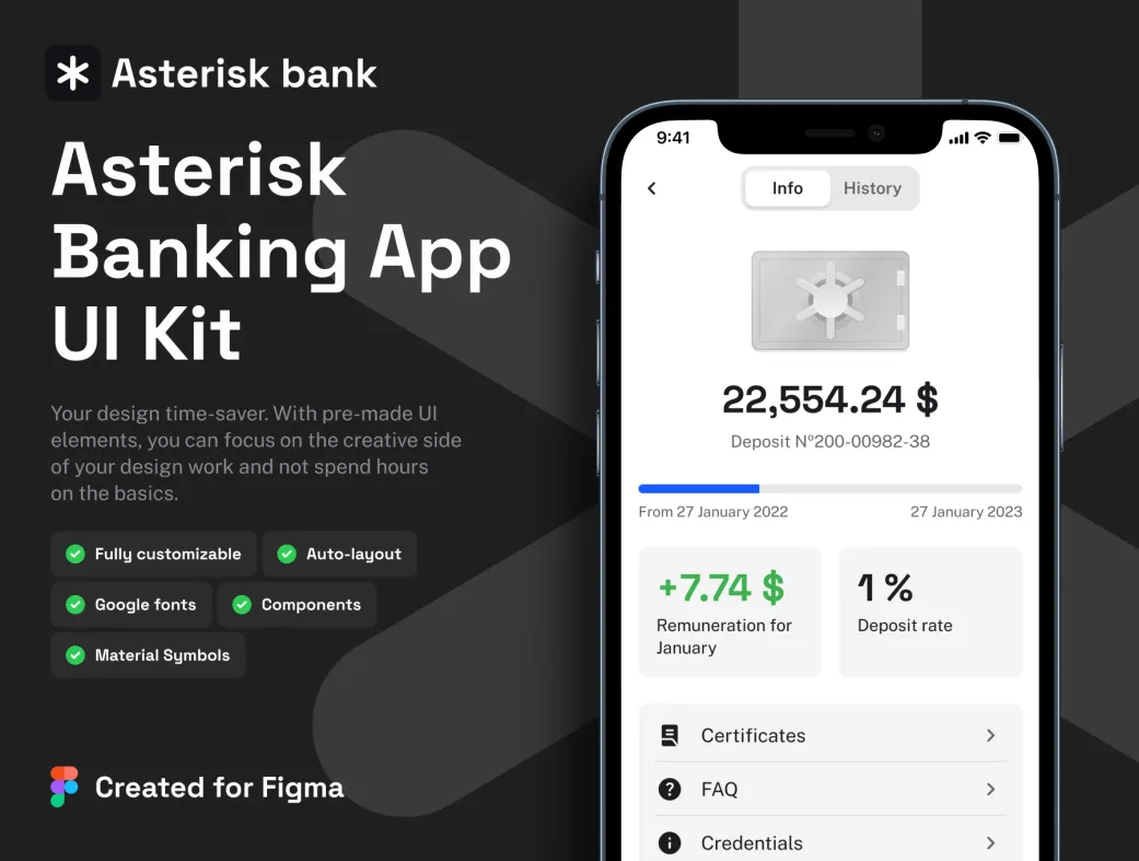 با کیت رابط کاربری اپلیکیشن بانکی آستریسک، میتوانید به راحتی و بدون نیاز به مهارتهای پیشرفته طراحی، یک اپلیکیشن مالی حرفهای بسازید. این کیت ایدهآل برای طراحان مبتدی یا حرفهای است که به دنبال قالب UI بانکی آماده برای فیگما هستند. فرقی نمیکند اپ مدیریت مالی شخصی بسازید یا اپلیکیشن کامل بانکی؛ همه ابزارهای لازم برای شروع سریع در دسترس شماست.