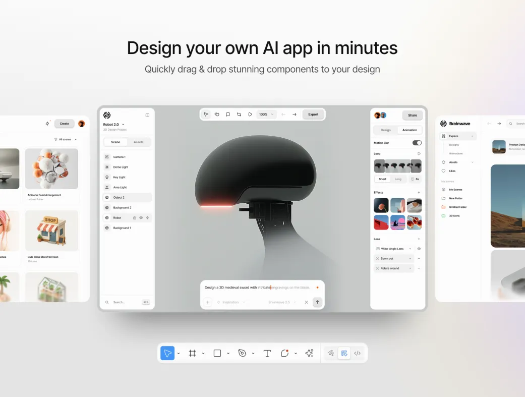 کیت UI Brainwave 2.0 یک ابزار قدرتمند طراحی رابط کاربری سهبعدی با پشتیبانی از هوش مصنوعی است که برای طراحان، توسعهدهندگان و خالقان محتوا ساخته شده. این کیت به شما کمک میکند تا ابزارهای طراحی 3D خیرهکننده، پلتفرمهای AI یا اپهای وب خلاقانه را در عرض چند دقیقه راهاندازی کنید. با تمرکز بر سادگی و کارایی، Brainwave 2.0 ترکیبی از سیستم طراحی زیبا در فیگما با ساختار هوشمند و پاسخگویی کامل ارائه میدهد.