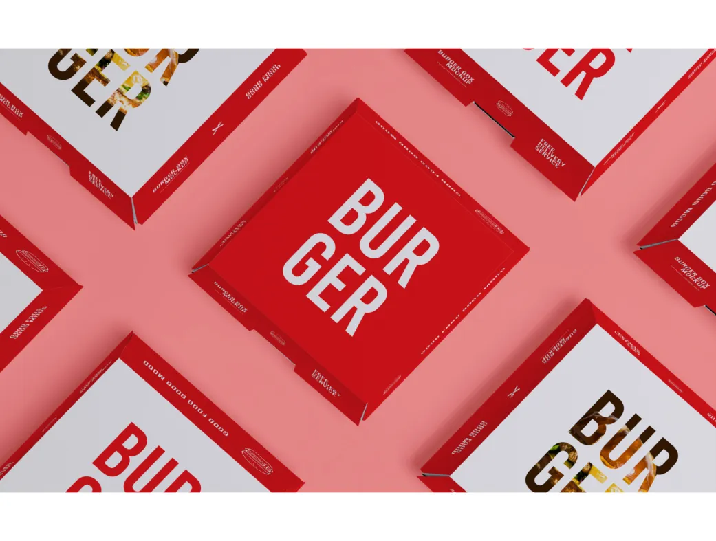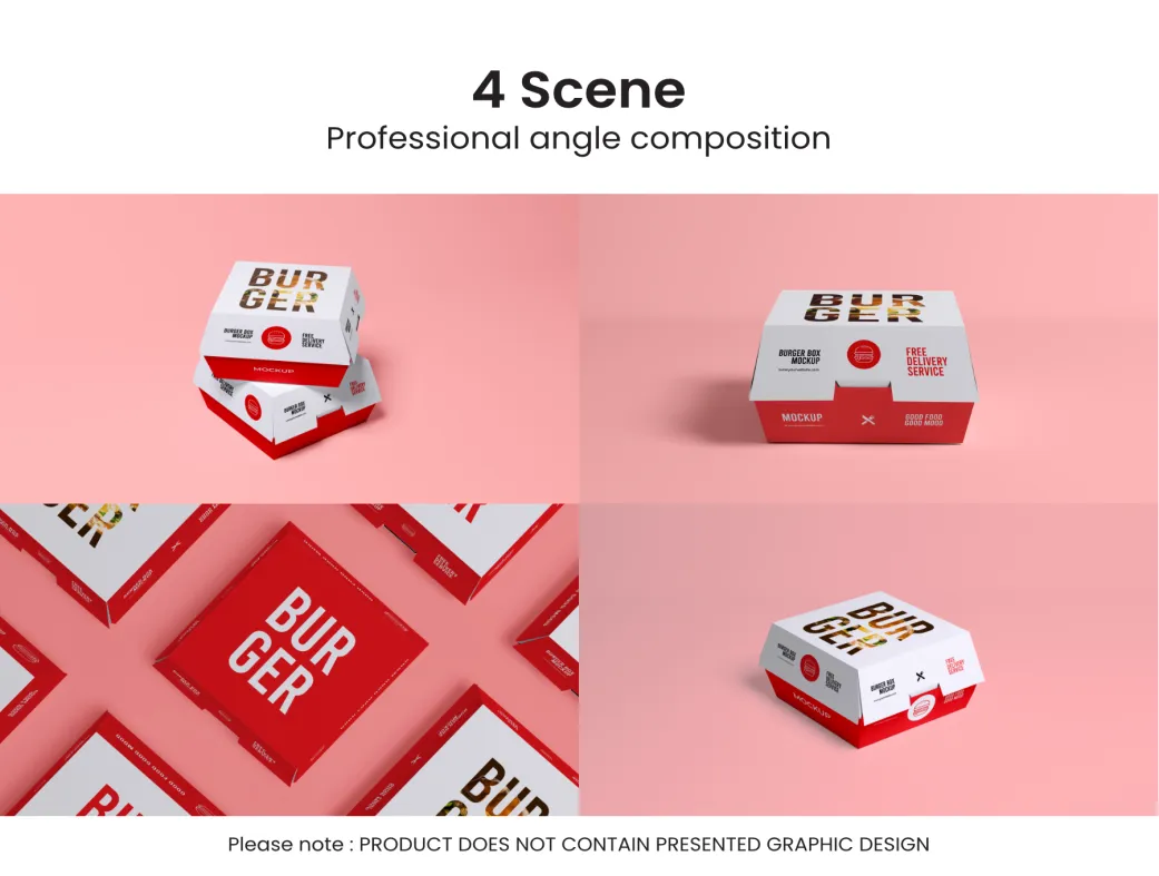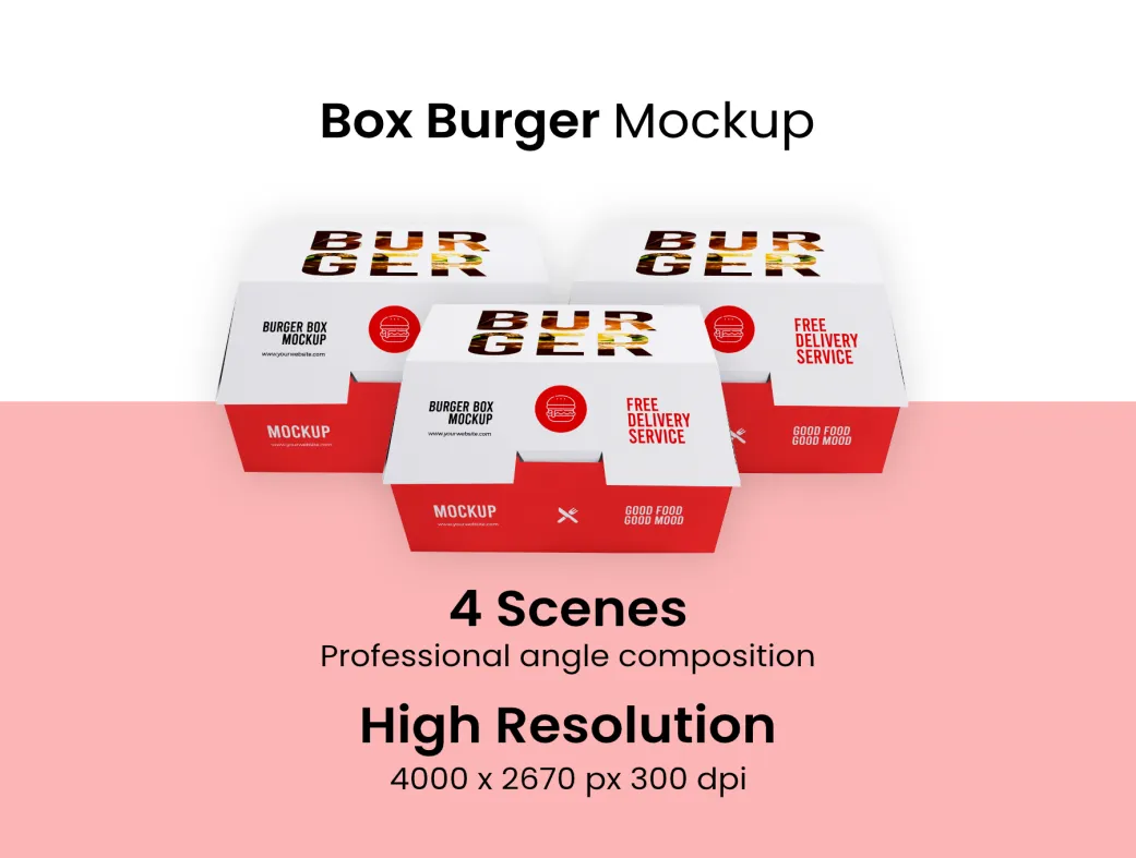 قالب موکاپ جعبه برگر رایگان | Photoshop | 4 Burger Box Mockup