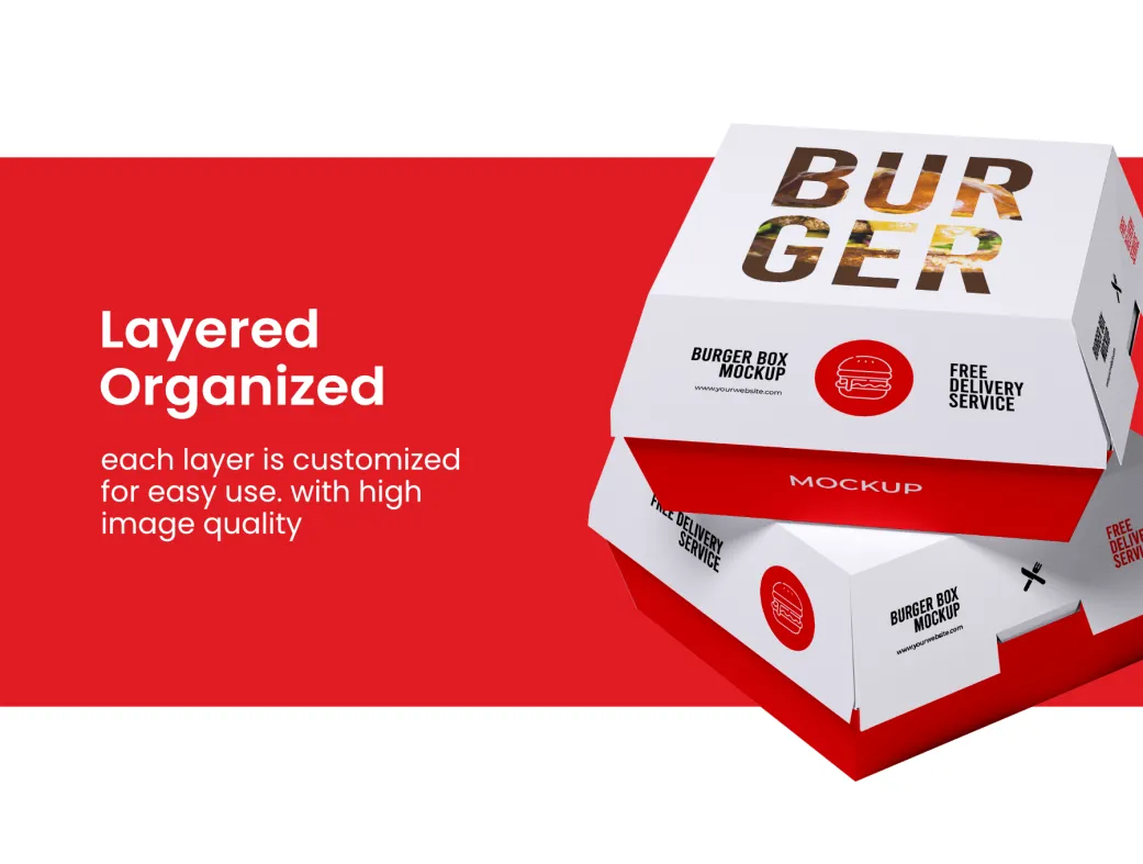 قالب موکاپ جعبه برگر رایگان یک ابزار کارآمد و حرفهای برای طراحان و بازاریابان است که میخواهند طرحهای خود را به بهترین نحو نمایش دهند. این موکاپ به راحتی قابل ویرایش است و به شما این امکان را میدهد تا پروژههای خود را به صورت واقعی و جذاب ارائه کنید.