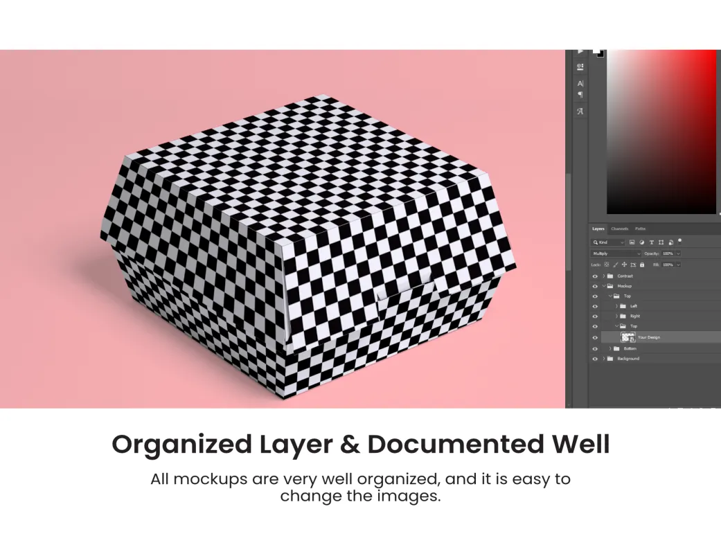 این قالب شامل تمامی المانهای قابل جایگزینی است که به آسانی میتوانید آنها را ویرایش کنید. با وجود سایههای شفاف قابل انتقال و لایههای استایل فویل، میتوانید جلوهای واقعی به جعبه برگر خود ببخشید. این موکاپ به شما کمک میکند تا پروژههای خود را به شکلی حرفهای در شبکههای اجتماعی و پورتفولیوی وبسایتتان به نمایش بگذارید. همچنین، طراحی کاربرپسند آن، آن را برای هر سطحی از کاربران، چه حرفهای و چه مبتدی، مناسب ساخته است.