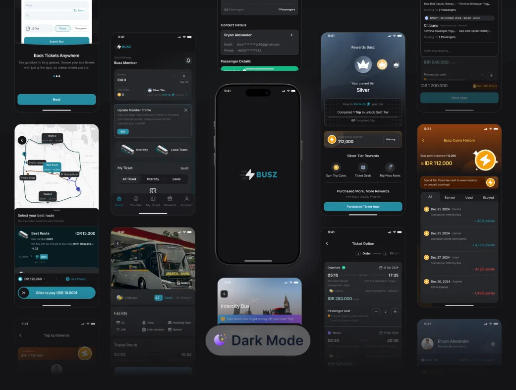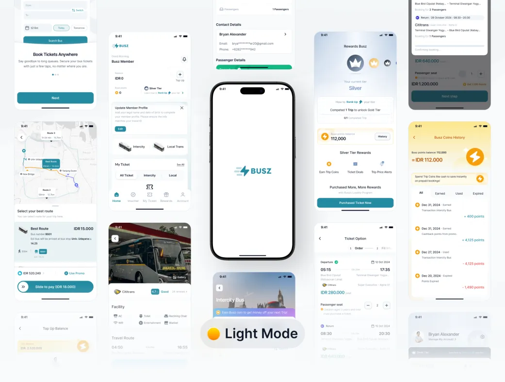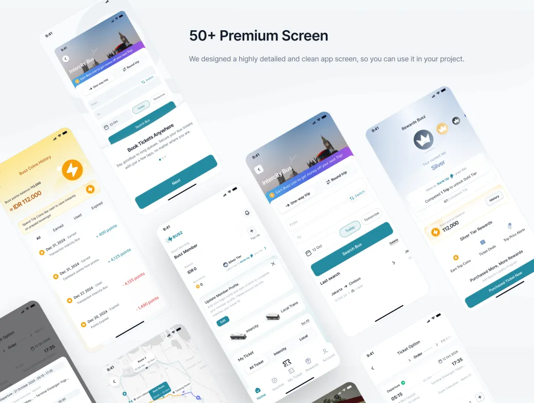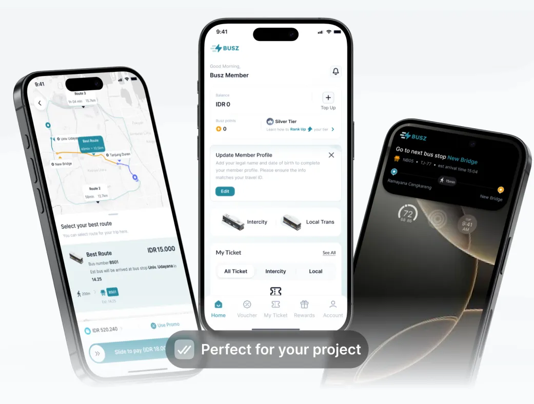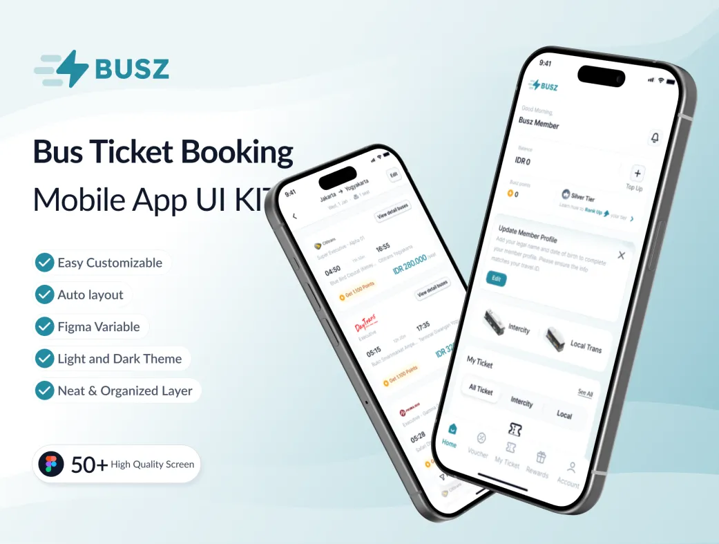 بوسز | Busz یک کیت رابط کاربری اختصاصی برای اپلیکیشنهای موبایل رزرو بلیط اتوبوس است که با دقت در فیگما طراحی شده. این قالب نه تنها یک طراحی ساده موبایل است، بلکه راهحلی جامع برای توسعهدهندگان و طراحان فراهم میکند تا اپهای رزرو بلیط اتوبوس حرفهای و کاربرپسند بسازند. از تجربه رزرو روان تا انتخاب صندلی هوشمند و جریان پرداخت امن، بوسز | Busz تمام ابزارهای لازم را برای تحویل اپ موبایلی برتر عرضه میکند.