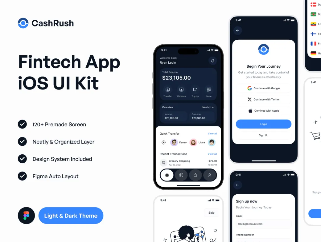 کیت UI کشراش با تمرکز بر سادگی و کارایی، مدیریت پروژههای طراحی را آسانتر میکند. از حالت تاریک پشتیبانی میکند تا تجربه کاربری بهتری در شرایط نوری مختلف ارائه دهد و لایههای منظم آن سرعت ویرایش را افزایش میدهد. علاوه بر این، کتابخانه کامپوننتها و راهنمای سبک، فرآیند طراحی را استاندارد و حرفهای نگه میدارد. با استفاده از فونت رایگان گوگل (Inter)، طراحیها هماهنگ و جذاب خواهند بود و برای اپهای موبایل iOS بهینهسازی شدهاند. این کیت نه تنها زمان توسعه را کاهش میدهد، بلکه کیفیت نهایی اپ فینتک شما را به سطح بالاتری میرساند.