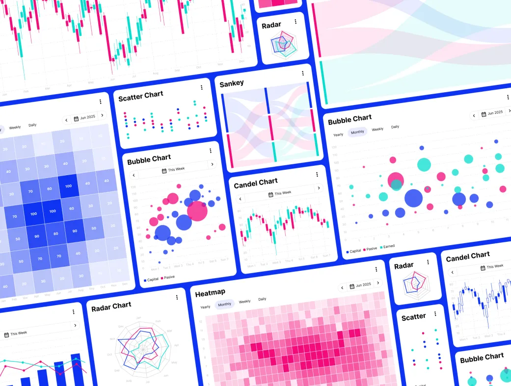 با این کیت قدرتمند، بیش از ۲۰ نوع چارت محبوب، ۱۴۰۰ بلوک گرافی آماده، بیش از ۲۵ نوع ویجت، ۵۰ افزونه، ۴۰ گرید پسزمینه و ۳ مجموعه رنگ ارزشمند در دسترس شماست. همه چیز کاملاً قابل سفارشیسازی، واکنشگرا و مقیاسپذیر است.