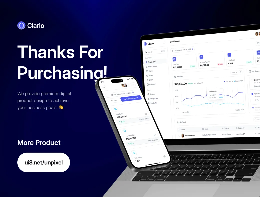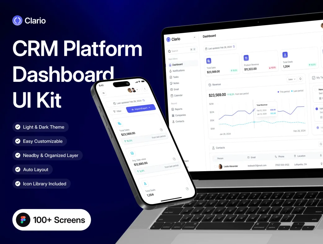 اگر به دنبال دانلود قالب داشبورد CRM فیگما، کیت UI مدیریت مشتری یا طراحی پنل فروش حرفهای هستید، کلاریو یکی از بهترین گزینههای موجود در بازار است.