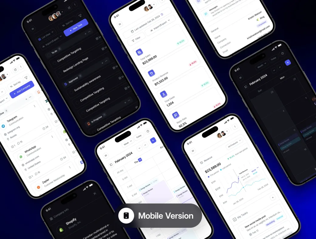 فایل Clario - CRM - Dashboard UI Kit.zip شامل تمام المانهای وکتوری، کامپوننتها و صفحات آماده است. این محصول کاملاً با فیگما سازگار بوده و نیازی به نرمافزار دیگری ندارد.