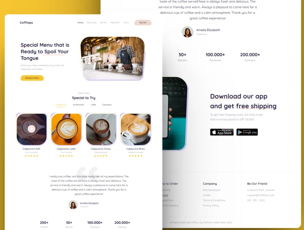 قالب وبسایت رایگان کافه با طراحی فیگما | Cofftops | Cofftops Template
