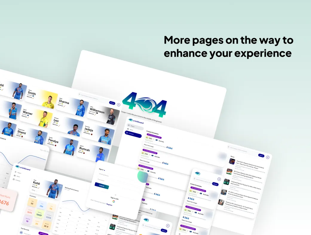 صفحات ورود و ثبتنام Crickboard به شما این اطمینان را میدهند که صفحات شما با رمز عبور محافظت شده و امنیت وبسایت شما تضمین شده است. Crickboard با ویژگیهای متنوعی که در خود دارد، بهترین گزینه برای هر علاقهمند به کریکت است که به NExtJs و Tailwind CSS علاقه دارد. پس منتظر چه هستید؟ پروژه خود را به اوج برسانید و تجربه کریکت خود را با Crickboard به سطح جدیدی ببرید.