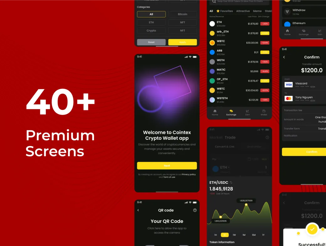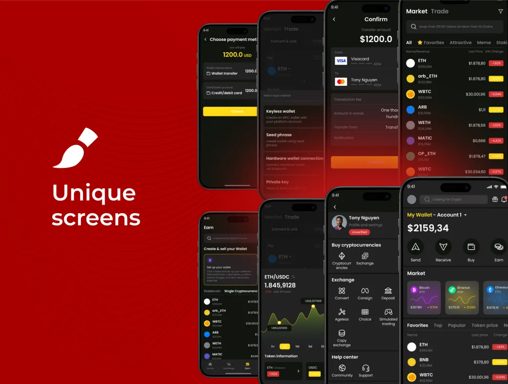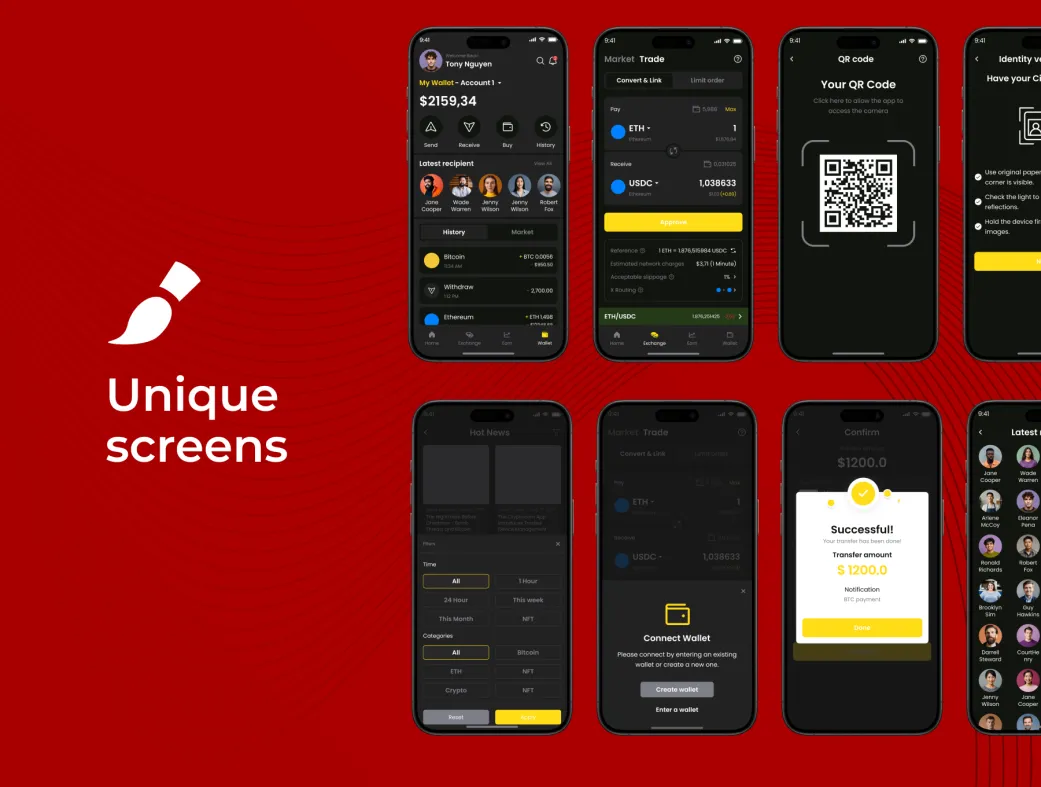 این کیت ایدهآل برای اپلیکیشنهای کیف پول کریپتو، صرافیهای دیجیتال و ابزارهای مالی موبایل است. از آن برای ایجاد رابطهای کاربری واکنشگرا استفاده کنید که با ترندهای جهانی UI/UX ارز دیجیتال همخوانی داشته باشد و نرخ تبدیل کاربران را افزایش دهد.