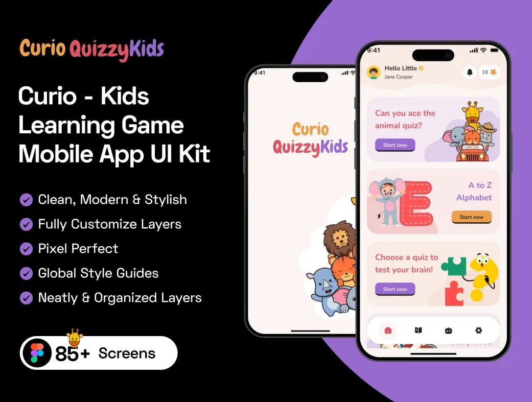 کیت UI کوریو با بیش از ۸۵ صفحه منحصربهفرد، تمام نیازهای یک اپ آموزشی را پوشش میدهد؛ از صفحه خوشآمدگویی و درسهای تعاملی گرفته تا آزمونها، دستاوردها و داشبورد والدین. هر صفحه با تعادل بین جذابیت بصری و هدف آموزشی طراحی شده، که آن را برای ساخت اپهای یادگیری اولیه، ابزارهای آموزشی بازیمحور یا پلتفرمهای توسعه شناختی ایدهآل میکند. این کیت به شما کمک میکند تا رابط کاربری اپلیکیشن کودکان را سریع و حرفهای بسازید، با صرفهجویی در زمان و افزایش کیفیت طراحی.