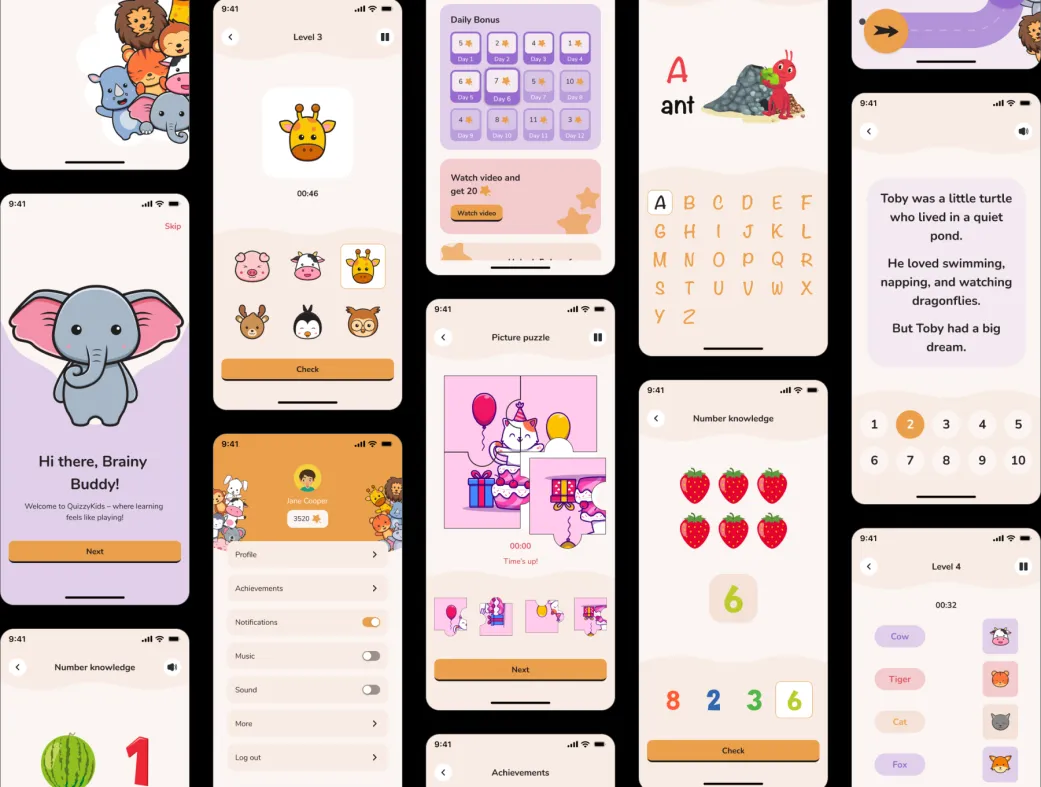 کیت UI اپلیکیشن موبایل بازی یادگیری کودکان - کوریو