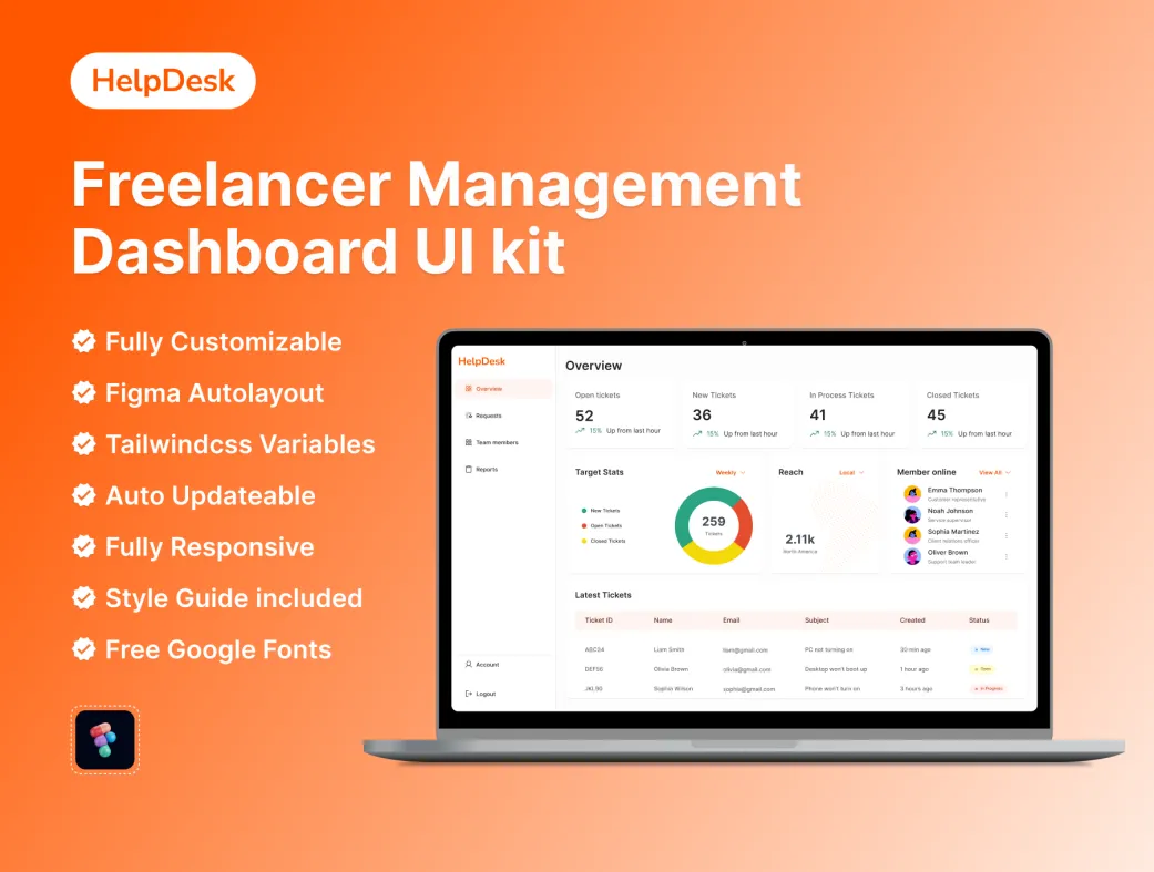 نصب و استفاده از داشبورد پشتیبانی مشتری بسیار ساده است. کافیست فایلهای Figma را دانلود کرده و بر اساس نیازهای خود، طراحی را سفارشی کنید.