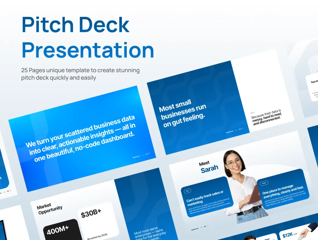این قالب با درک نیازهای بنیانگذاران، سرمایهگذاران خطرپذیر و رهبران کسبوکار ساخته شده تا وضوح و شتاب را در ارتباطاتتان برجسته کند.