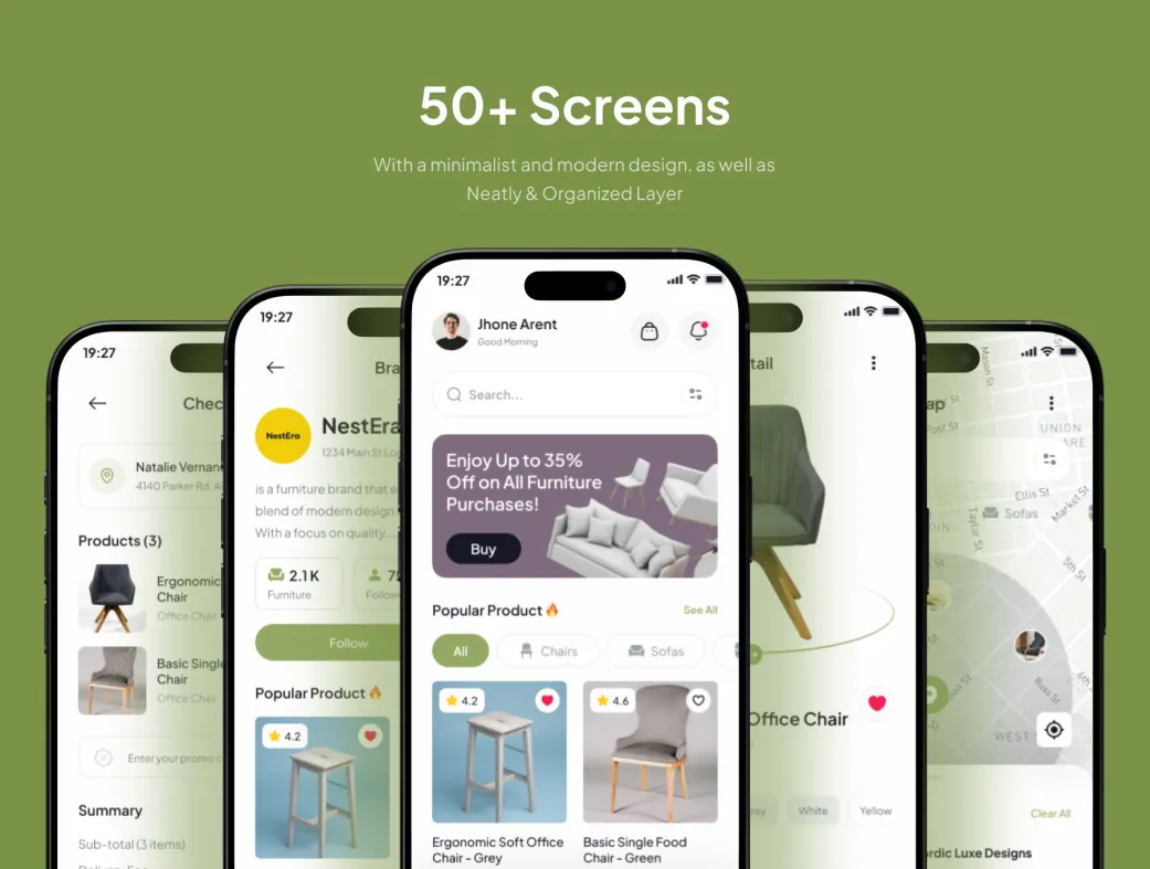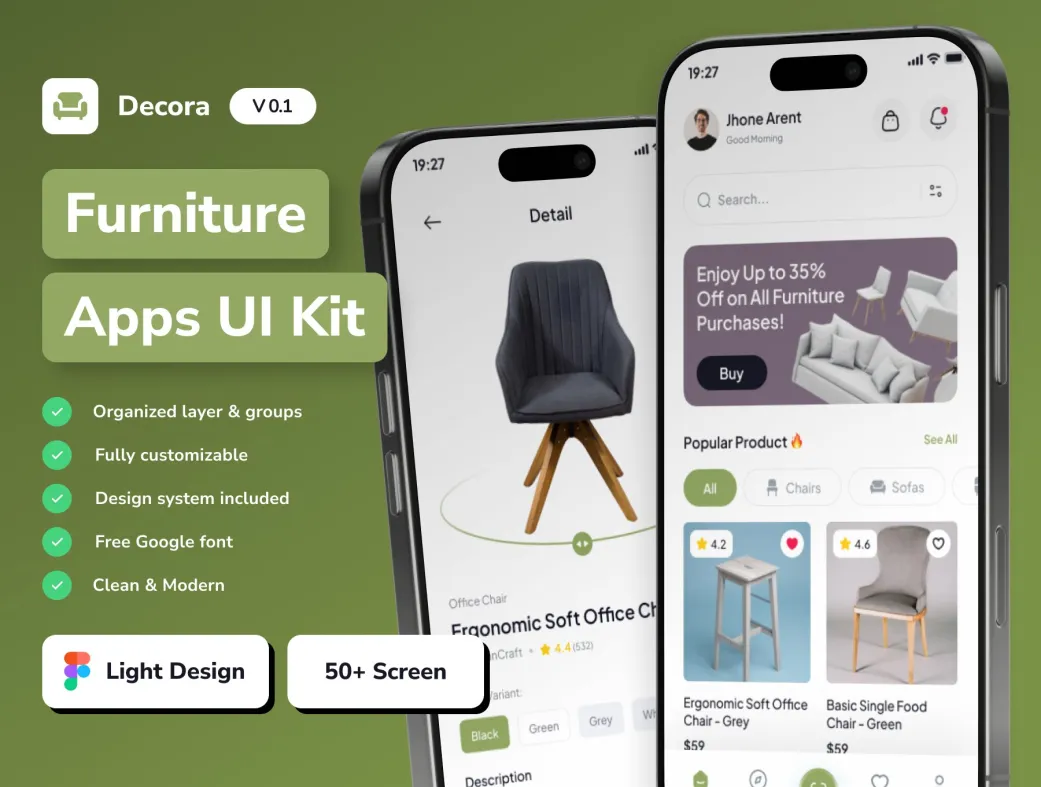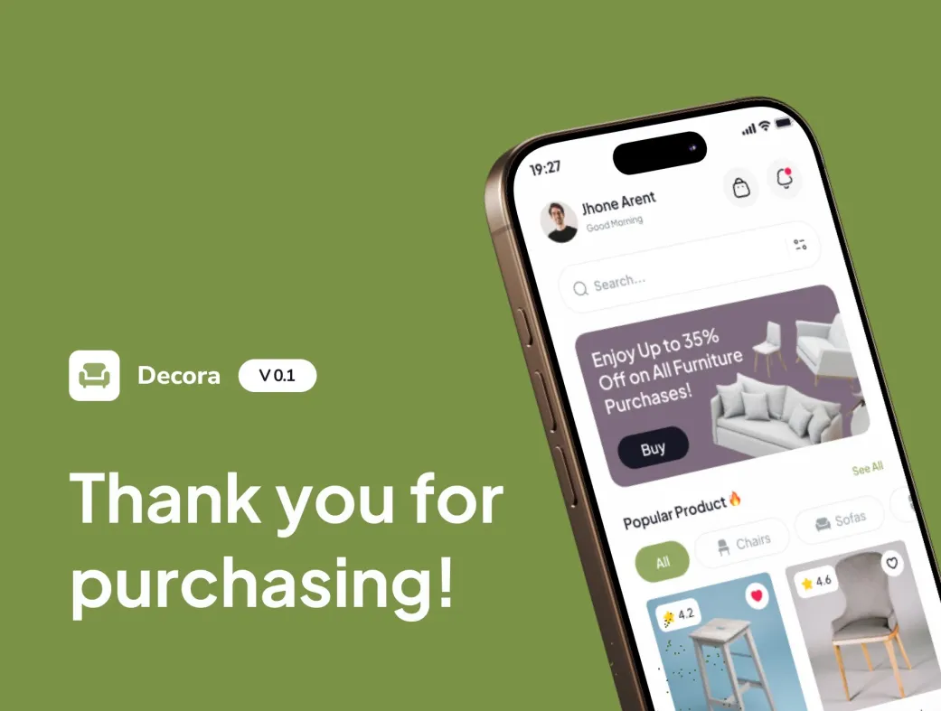 کیت UI اپلیکیشن مبلمان دکوراسیون | Decora | Decora UI Kit | کیت UI دکوراسیون مبلمان