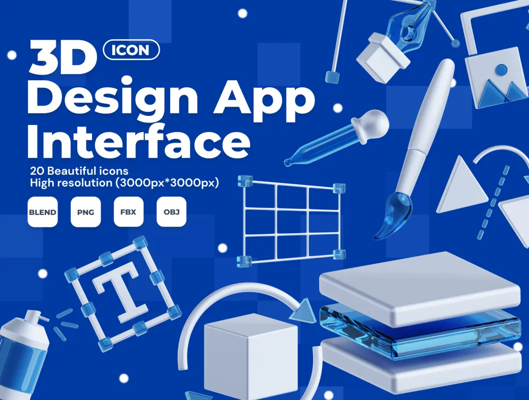 ست آیکون سهبعدی رابط طراحی اپلیکیشن رایگان | Blender | Design App Interface 3D Icon Set