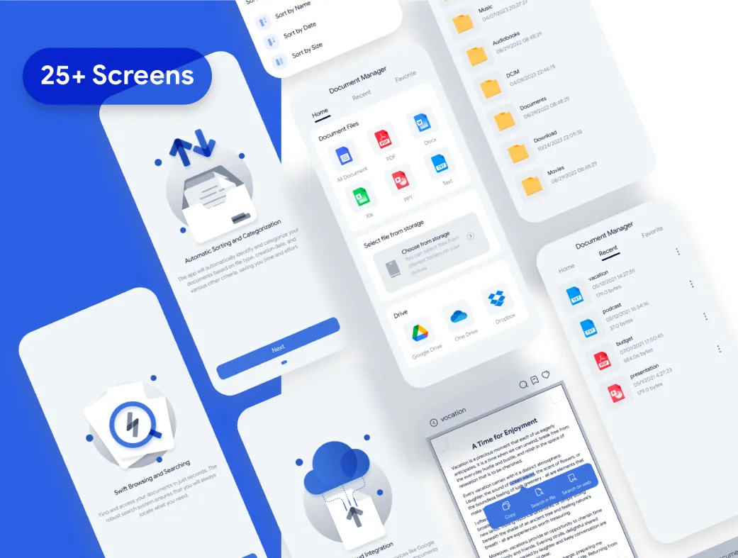 مدیر اسناد دارای ویژگیهای متعددی است که کاربر را قادر میسازد تا به راحتی با اسناد خود کار کند. یکی از اصلیترین مزایای این اپلیکیشن، قابلیت مشاهده سریع اسناد است. شما میتوانید به راحتی فایلهای مستندات خود را باز کرده و آنها را بخوانید. این اپلیکیشن توانایی مدیریت انواع فایلها از جمله MS Word، MS Excel و MS PowerPoint را دارد که به شما کمک میکند تا به راحتی به اطلاعات مورد نظر خود دسترسی پیدا کنید.