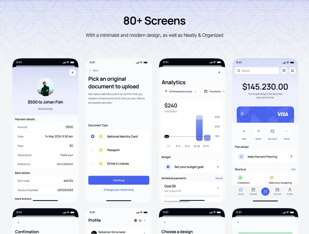 این کیت UI با بیش از ۸۰ صفحه آماده، کامپوننتهای سازمانیافته و لایهبندی دقیق، به شما کمک میکند تا رابط کاربری مدرن و هماهنگ با ترندهای مالی ایجاد کنید. مزایای کلیدی شامل سازگاری کامل با iOS، امنیت بالا در طراحی و انعطافپذیری برای سفارشیسازی است – ایدهآل برای پروژههای اپلیکیشن بانکی که نیاز به سرعت و کیفیت دارند.