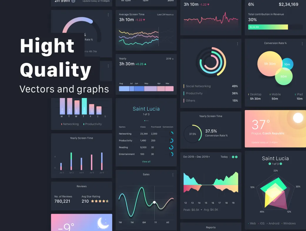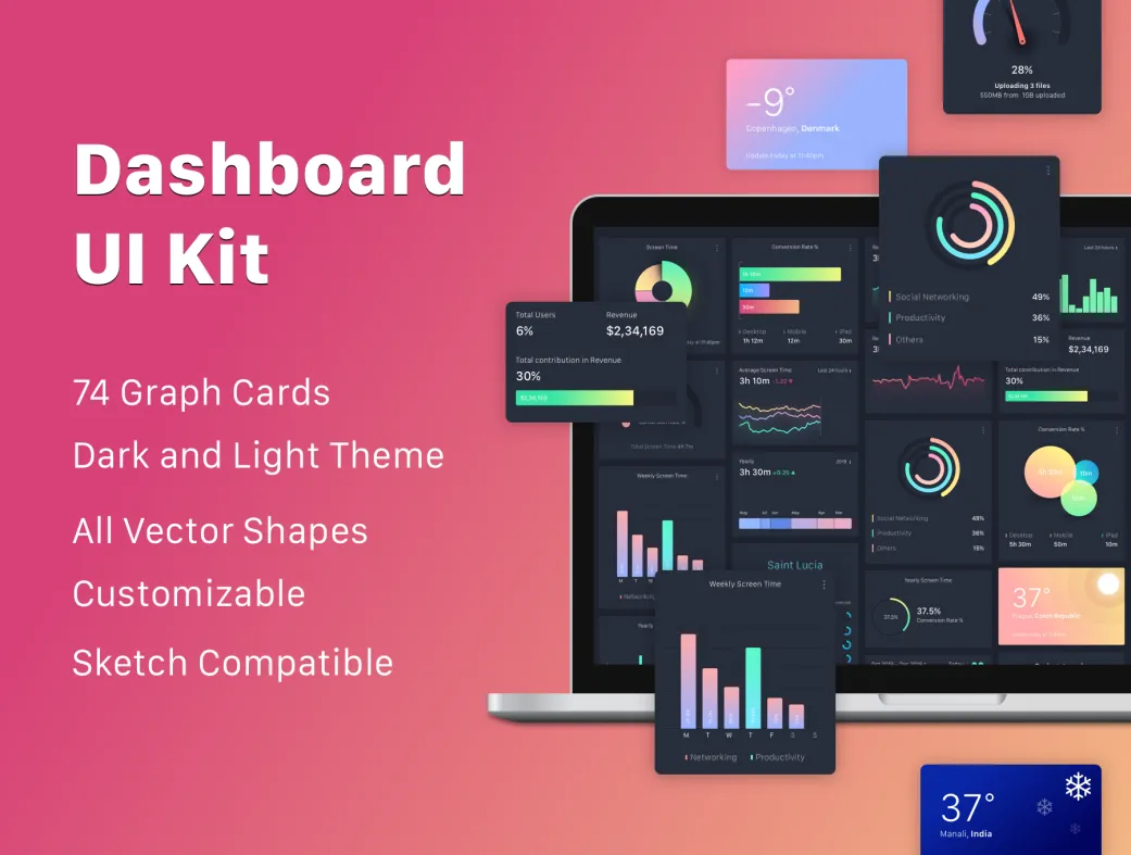ایدهآل برای طراحان UI/UX که به دنبال قالبهای داشبورد ادمین برای سایتهای فروشگاهی، اپهای موبایل و ابزارهای تحلیلی هستند. از وایرفریمهای اولیه تا پروتوتایپهای نهایی، این کیت ابزار کاملی برای بهینهسازی نرخ تبدیل ارائه میدهد.
