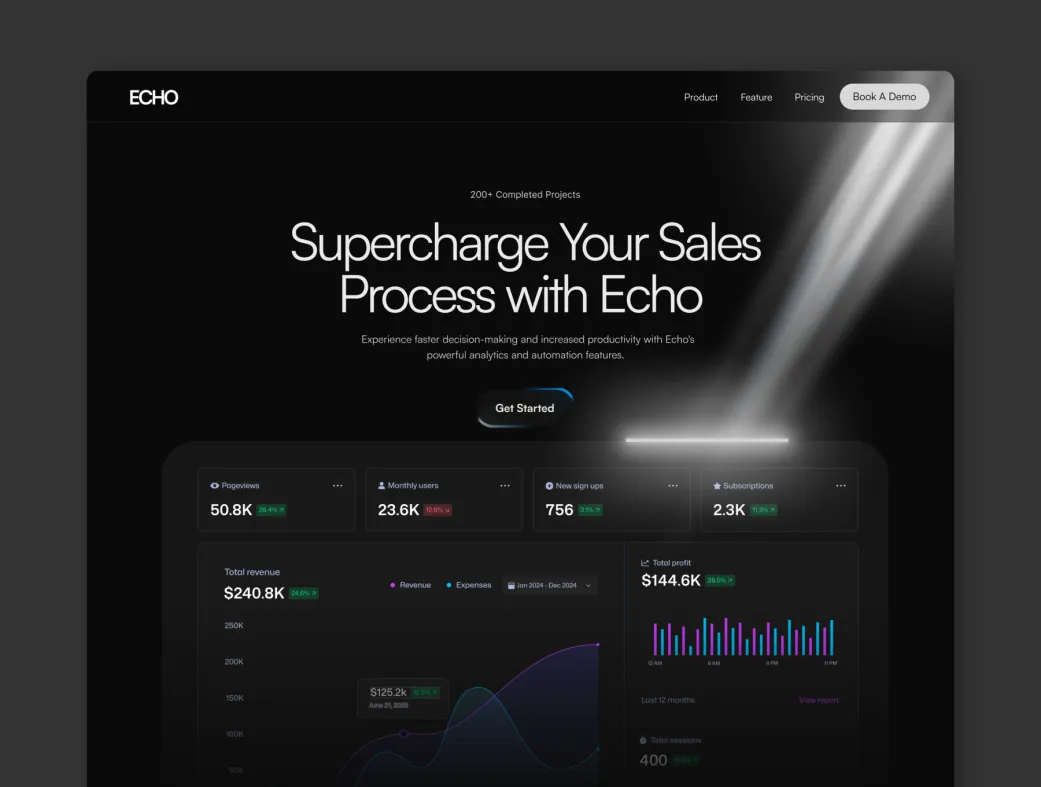قالب اکو | Echo یک ابزار قدرتمند برای طراحان وب است که به سرعت صفحات فرود جذاب برای محصولات SaaS میسازد. این قالب فرمر با تمرکز بر سادگی و کارایی، به شما کمک میکند تا بدون کدنویسی، لندینگ پیجهای حرفهای ایجاد کنید و نرخ تبدیل کاربران را افزایش دهید. اگر به دنبال قالب صفحه فرود SaaS هستید که با ترندهای مدرن همخوانی داشته باشد، اکو گزینه ایدئال شماست.