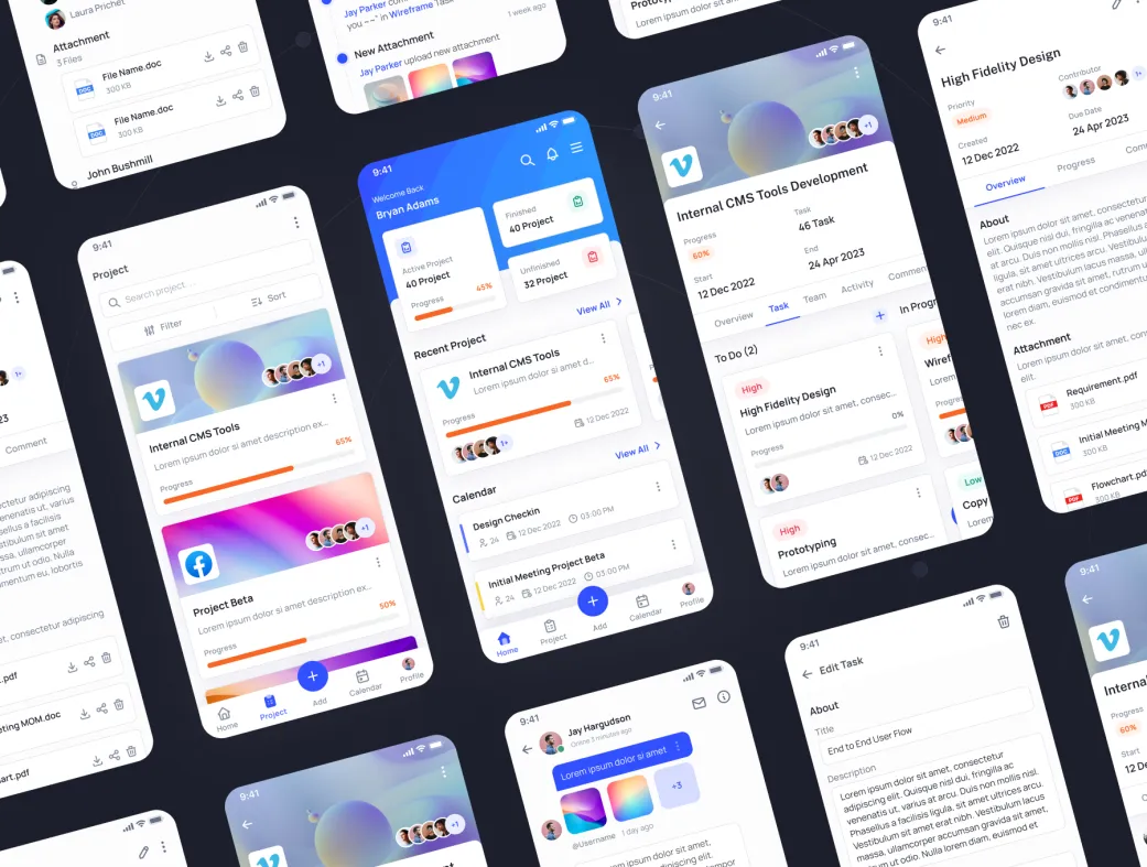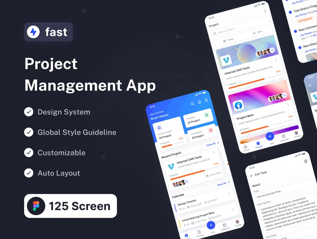کیت UI اپلیکیشن مدیریت پروژه سریع | Figma | کیت UI مدیریت پروژه