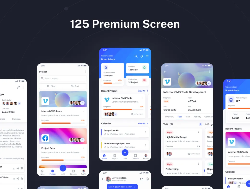 کیت UI اپلیکیشن مدیریت پروژه سریع، یک مجموعه طراحی حرفهای برای مدیریت پروژه و وظایف است که شامل ۱۲۵ صفحه با کیفیت بالا میباشد. این کیت شامل امکاناتی نظیر تقویم، پیامها، مدیریت تیم و مدیریت فایل است تا شما بتوانید همه چیز را در یک مکان مدیریت کنید.