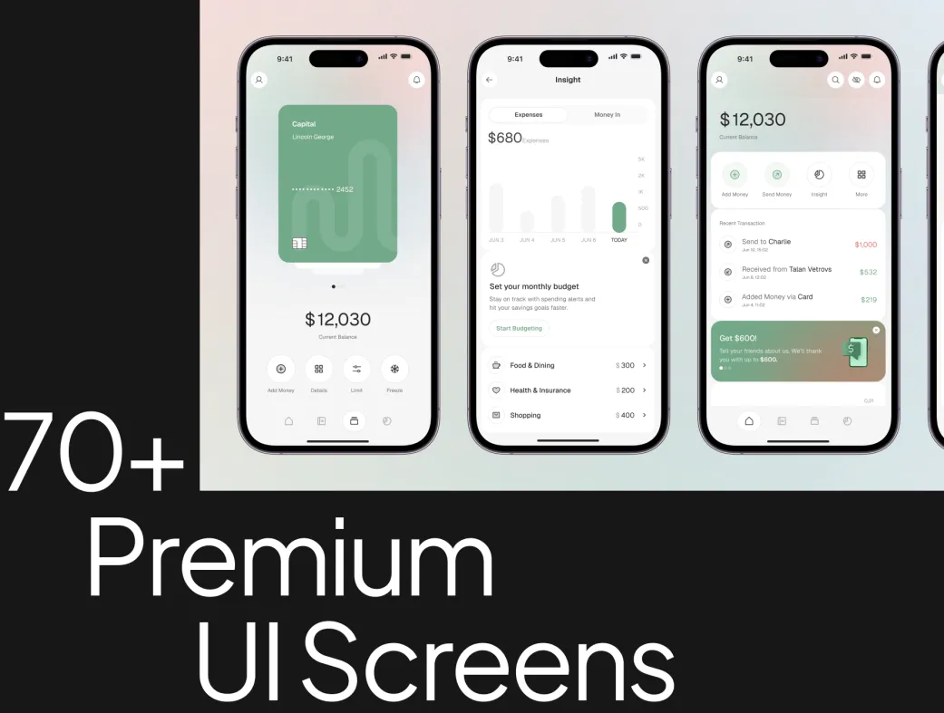 با بیش از ۷۰ صفحه طراحیشده زیبا، این کیت هر عملکرد مالی کلیدی را پوشش میدهد – از ردیابی هزینهها و بودجهبندی تا اهداف پسانداز و خلاصه تراکنشها. چه در حال ساخت ردیاب مالی شخصی، اپ بانکی یا MVP فینتک باشید، این کیت بلوکهای ساختمانی لازم را برای سرعتبخشی به طراحی و دقت بالا فراهم میکند.