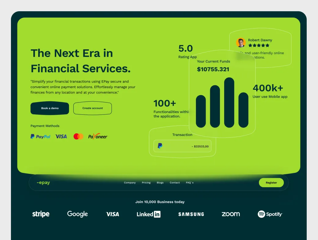 کیت وبسایت رایگان فینتک یک مجموعه کاربری طراحی شده برای طراحان مشغول و آژانسهای دیجیتال است. این کیت شامل طراحیهای منحصر به فرد و شگفتانگیز برای اجزای وبسایت میباشد و به شما امکان میدهد تا با سرعت بیشتری پروژههای خود را به پایان برسانید.