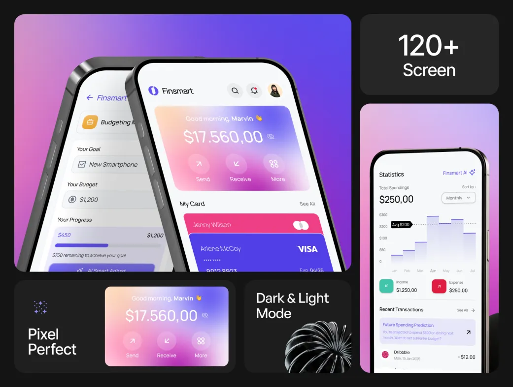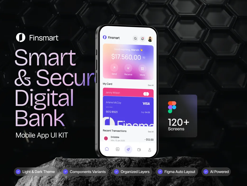 کیت UI اپلیکیشن بانکی دیجیتال هوشمند و امن | Finsmart | Smart & Secure Digital Bank Mobile App UI KIT