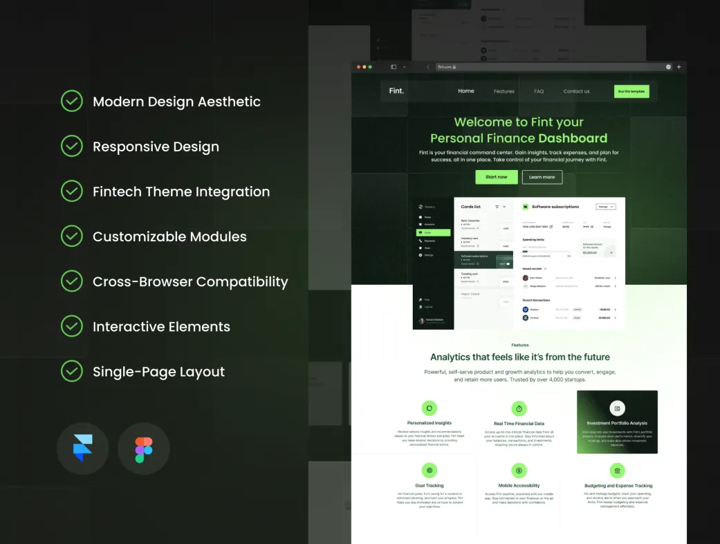 ویژگیها و مزایای قالب لندینگ پیج Fint
