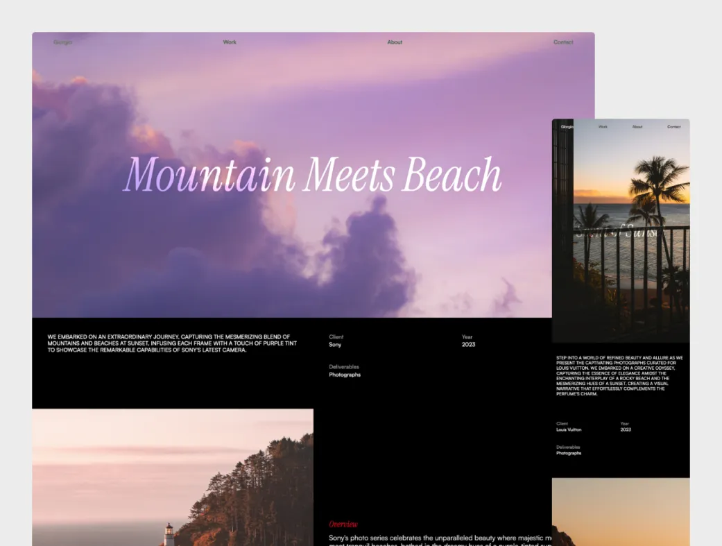 قالب جورجیو | Giorgio یک الگوی اصیل و چندمنظوره است که برای آژانسها و افراد خلاق طراحی شده تا آثار خود را به بهترین شکل نمایش دهند. این قالب بدون نیاز به کدنویسی، با طراحی مینیمالیستی محتواهای شما را برجسته میکند و پیامتان را به شکلی مؤثر منتقل مینماید. اگر به دنبال قالب Framer آژانس هستید، جورجیو گزینهای ایدهآل برای ساخت وبسایت پورتفولیو حرفهای است.