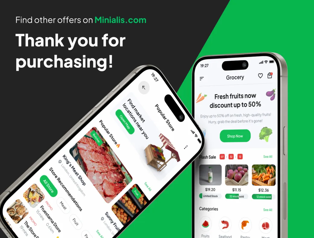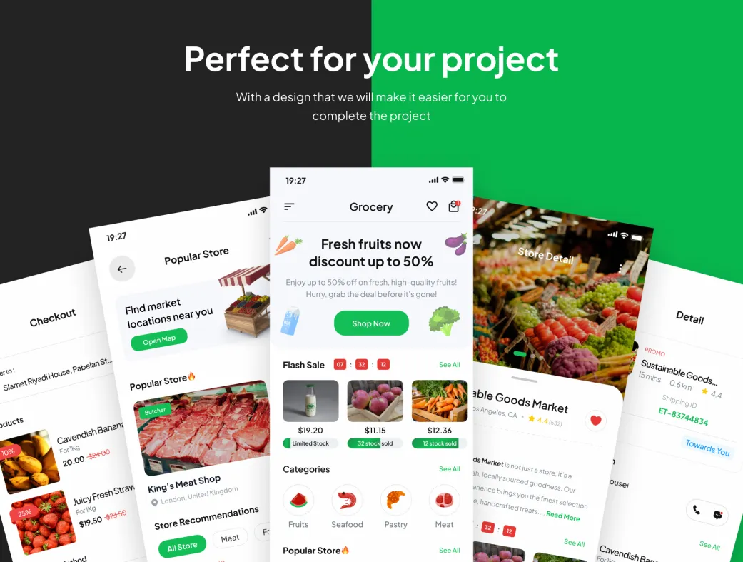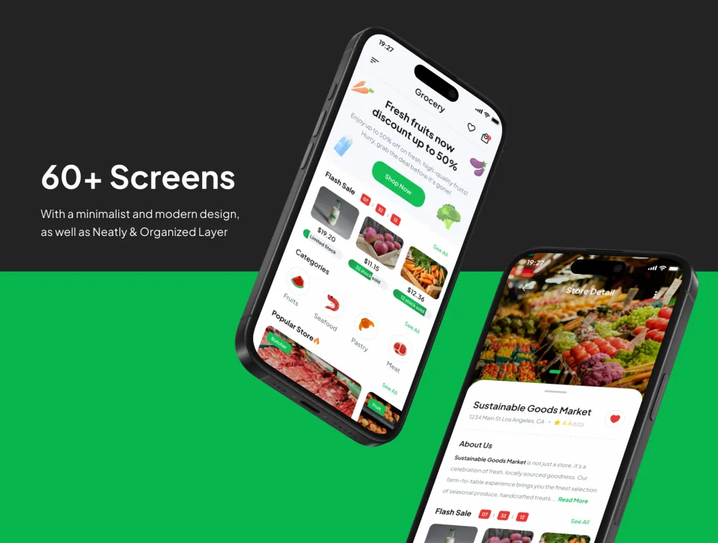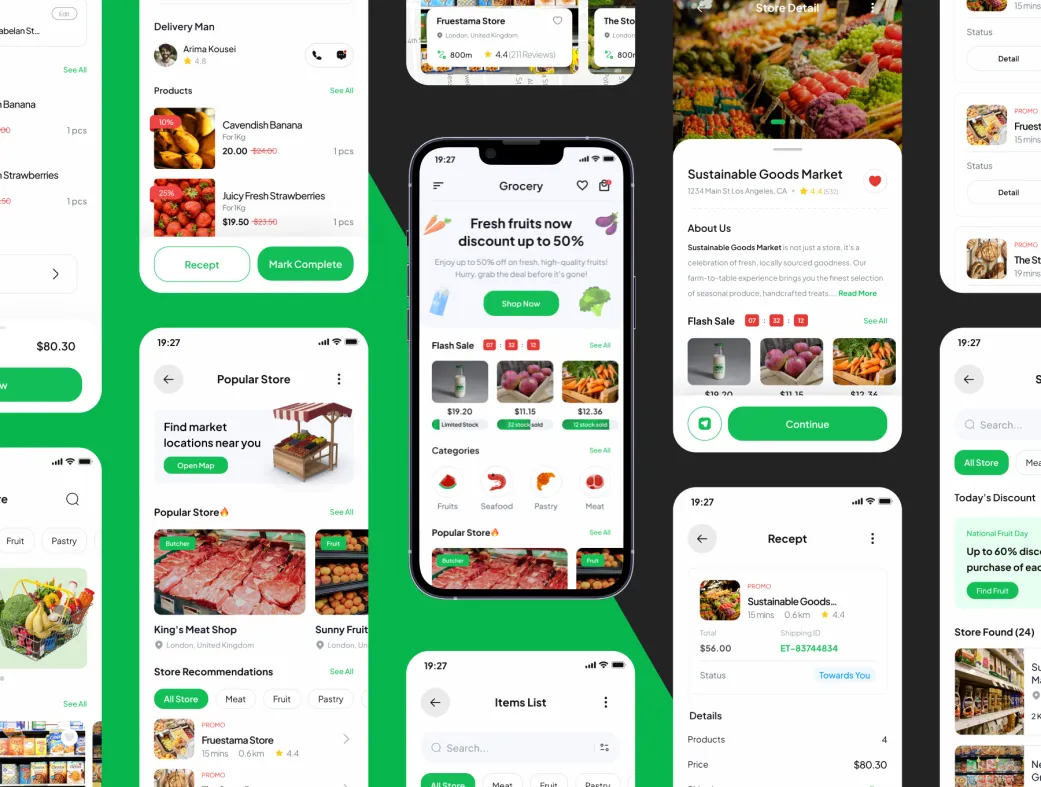 کیت UI اپلیکیشن موبایل تجارت الکترونیک مواد غذایی | Grocify | Grocify UI Kit