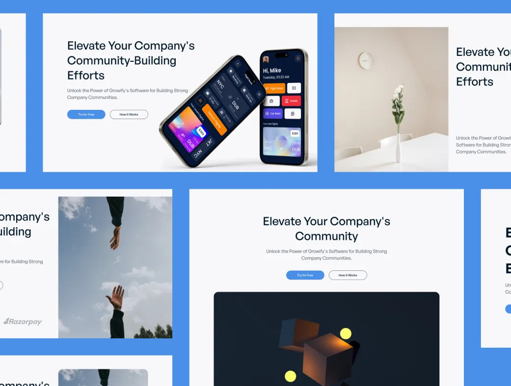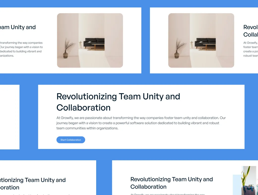 برای استفاده از Growify، کافیست فایل طراحی را در نرمافزار فیگما بارگذاری کرده و از ساختار و بلوکهای آماده آن استفاده کنید. میتوانید رنگها و قلمها را طبق سلیقه خود تغییر دهید و صفحه فرود خود را بهراحتی سفارشیسازی کنید.