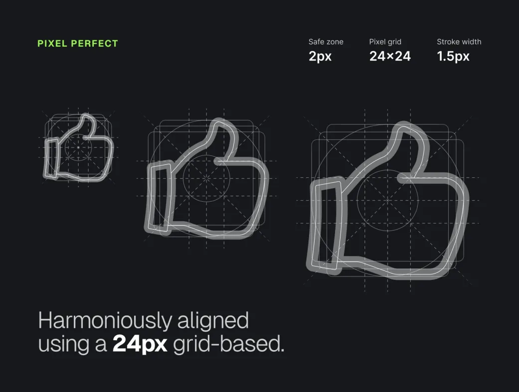 آیکونهای هایکن ۲.۰ با استفاده از اندازه شبکه ۲۴x۲۴ پیکسل و خطهای استروک ۱.۵ پیکسلی، بهطور کامل با نیازهای طراحان و توسعهدهندگان سازگار است. تمام اشکال این مجموعه بهصورت وکتوری طراحی شدهاند، که این امر امکان تغییر اندازه بدون افت کیفیت را فراهم میکند. گوشههای نرم و گرد این آیکونها به زیبایی و جذابیت طراحی شما افزوده و استایلهای جدید و حرفهایتر به مجموعه اضافه شده است.