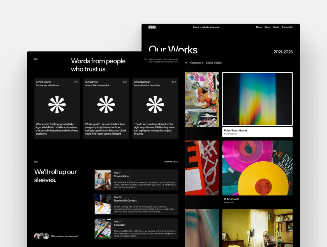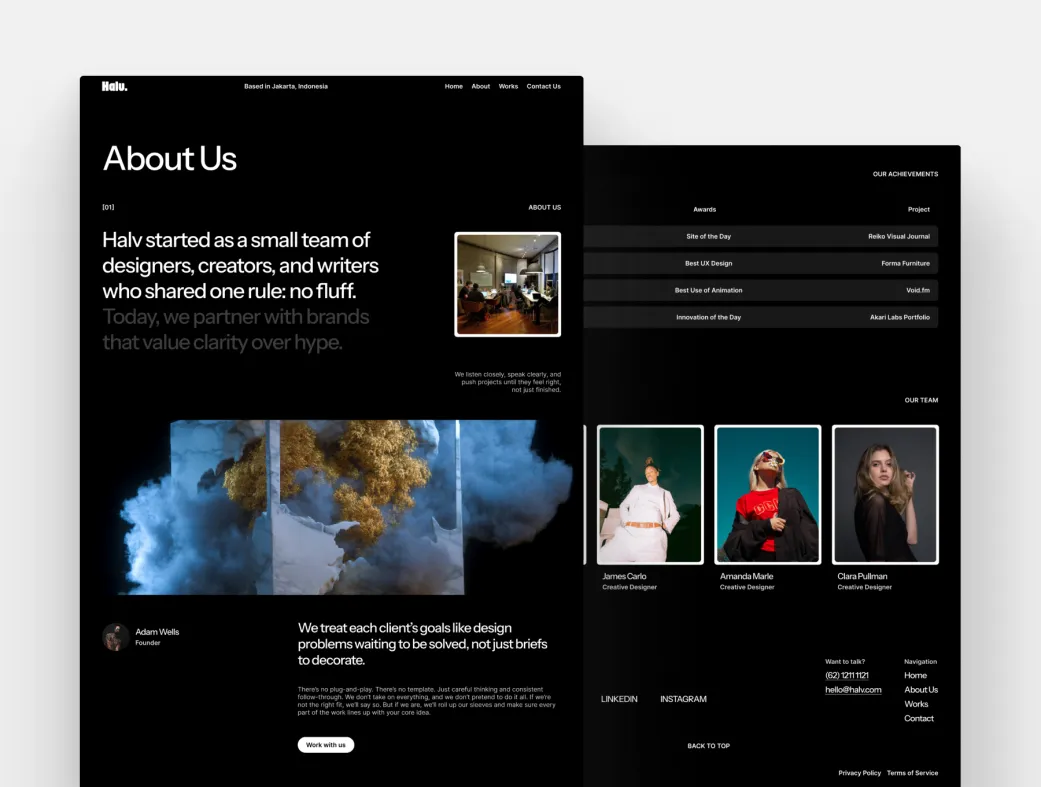 قالب Framer آژانس خلاق HALV یک الگوی وبسایت تمیز، هوشمندانه و فوقالعاده قابل سفارشیسازی است که برای آژانسهای خلاق، استودیوها و تیمهای مستقل طراحی شده. این قالب با کامپوننتهای بومی Framer، پشتیبانی از CMS و تعاملات پویا ساخته شده و بدون نیاز به کدنویسی، امکان تعویض تصاویر، ویرایش محتوا یا گسترش بخشها را برای تطبیق با لحن و فرآیند برند شما فراهم میکند. اگر به دنبال قالب Framer حرفهای برای راهاندازی سریع وبسایت هستید، HALV گزینهای ایدهآل است.