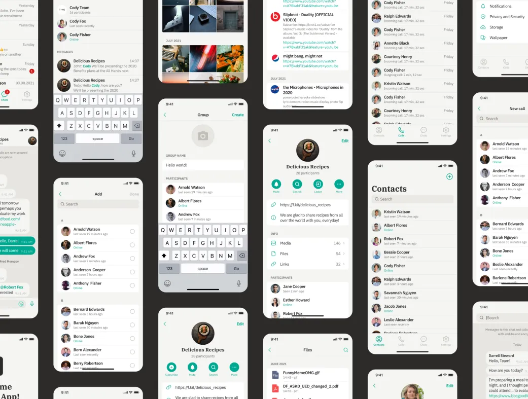 - صفحه ورود، ثبتنام و احراز هویت و بسیاری از صفحات کاربردی دیگر که نیازهای اصلی یک اپلیکیشن پیامرسان را پوشش میدهد.