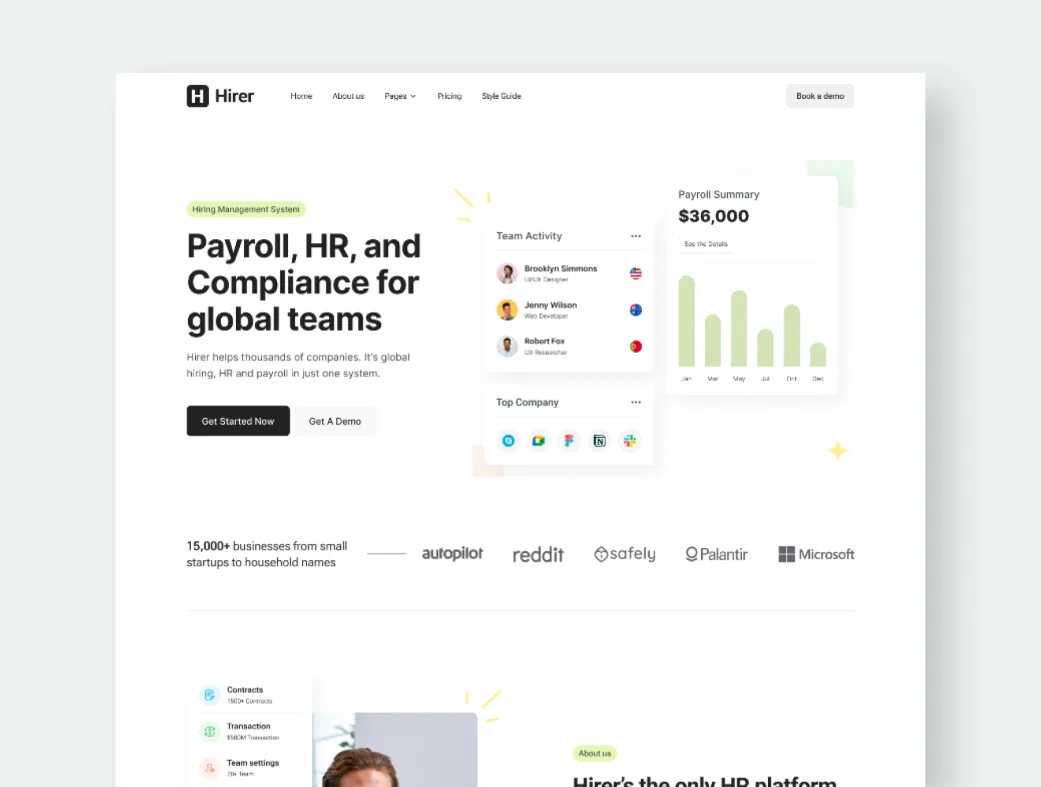 قالب فریمر SaaS منابع انسانی هایرر | Hirer