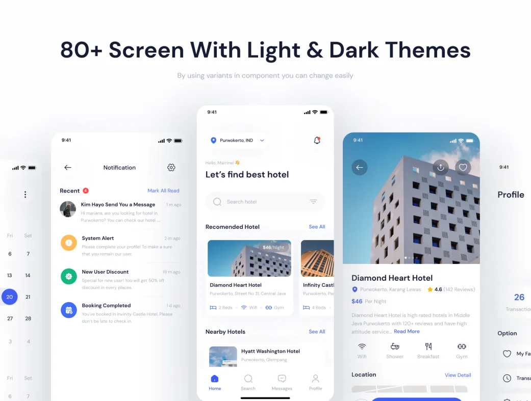 کیت UI اپلیکیشن رزرو هتل هاتلین (Hotelyn) یک مجموعه پیشرفته از طراحیهای رابط کاربری برای اپلیکیشنهای رزرو هتل است. این کیت شامل بیش از 80 صفحه با کیفیت بالا میباشد و طراحی مدرن، تمیز و کاربرپسند آن، تجربهای عالی برای کاربر نهایی فراهم میکند. همچنین، این کیت در دو تم روشن و تاریک به صورت فایل Figma در دسترس است.