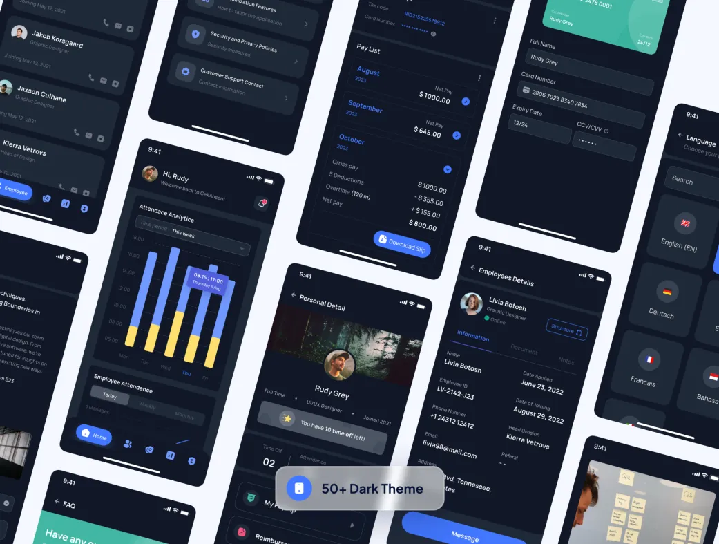 کیت UI اپ مدیریت منابع انسانی موبایل | Cekabsen یک مجموعه برتر و حرفهای است که شامل 51 صفحه باکیفیت بالا میشود و به راحتی در نرمافزار فیگما قابل استفاده است. این کیت برای طراحان و توسعهدهندگان اپلیکیشنهای موبایل طراحی شده تا مدیریت نیروی کار را سادهتر کنند.