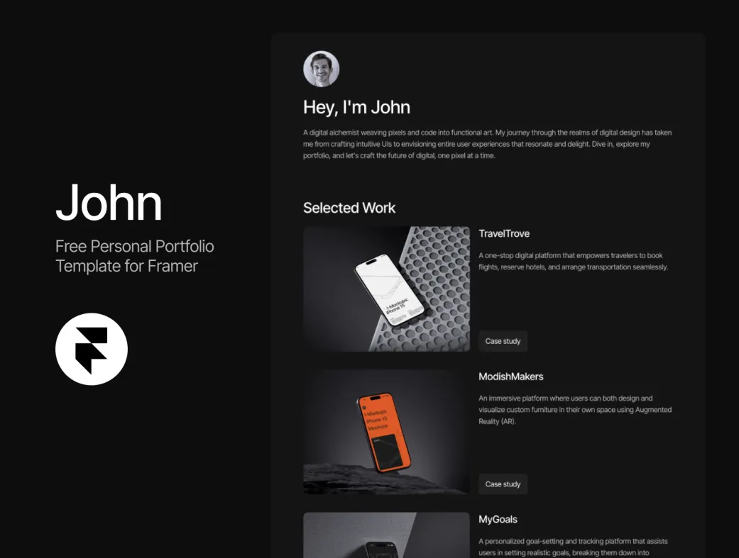 قالب نمونه کار شخصی رایگان جان برای فریمر | JOHN | قالب نمونه کار فریمر