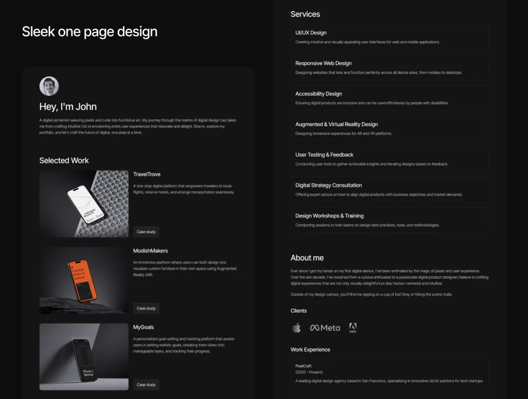 قالب نمونه کار شخصی جان برای فریمر یک الگوی تک صفحهای minimal است که به شما این امکان را میدهد تا آثار خود را با استایل و زیبایی به نمایش بگذارید. این قالب به ویژه برای حرفهایها طراحی شده است که به دنبال یک طراحی تمیز و شهودی هستند. مناسب برای طراحان، هنرمندان و خلاقان، این قالب به شما کمک میکند تا به سادگی و به طور مؤثر حضور آنلاین خود را ارتقا دهید.