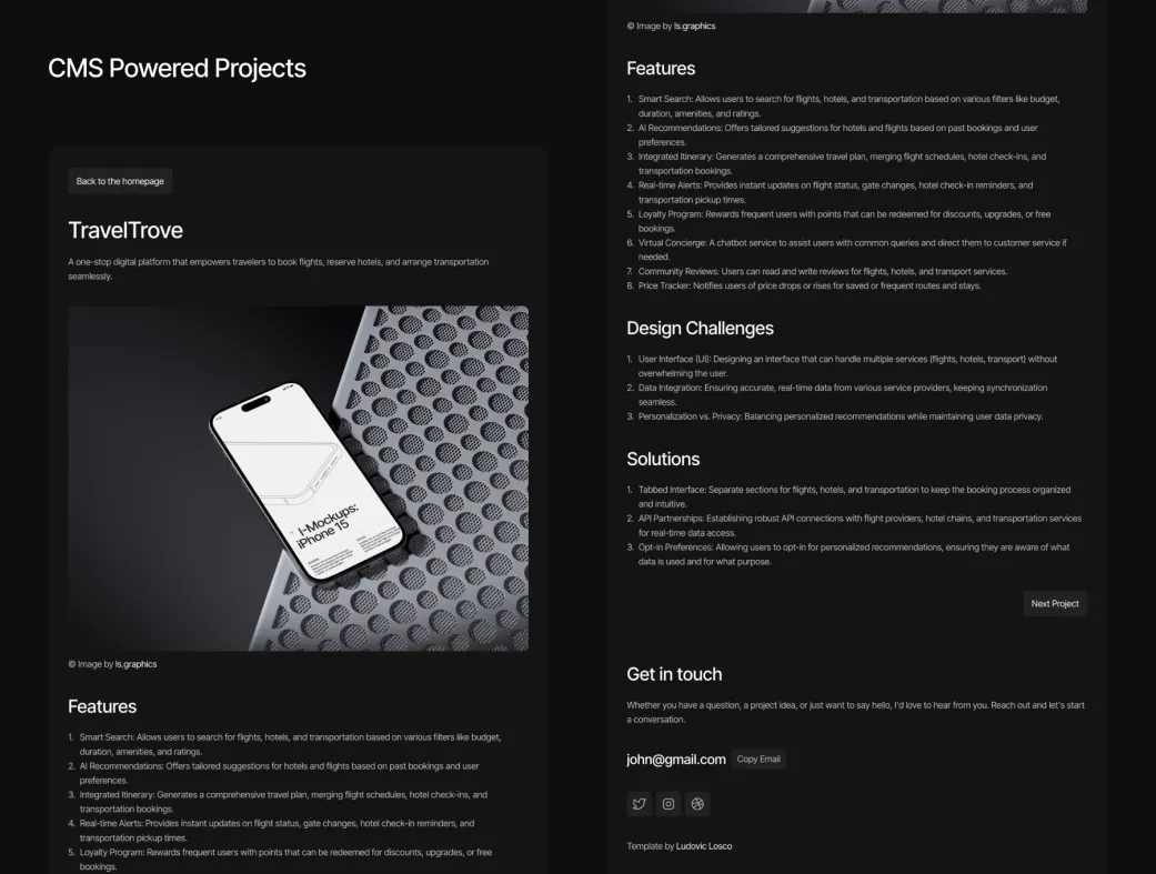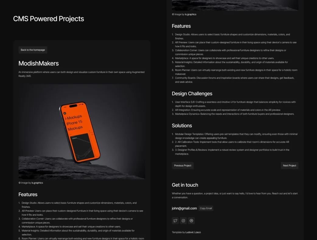این قالب دارای 3 صفحه اصلی (صفحه اصلی، آیتم کار CMS، صفحه 404) است که به شما این امکان را میدهد تا پروژههای خود را به شیوهای کاربرپسند ارائه دهید. با پروژههای پشتیبانی شده توسط CMS، شما میتوانید به راحتی محتوای خود را مدیریت کنید.