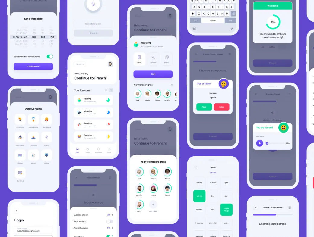 کیت UI فیگما اپلیکیشن یادگیری زبان iOS