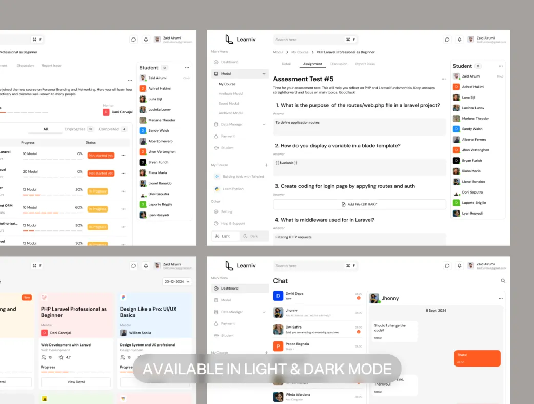 اگر به دنبال یک کیت UI داشبورد LMS حرفهای و آماده هستید، Learniv دقیقاً همان چیزی است که نیاز دارید! این محصول به شما کمک میکند تا پنل مدیریت سیستم مدیریت یادگیری (Learning Management System) را با سرعت بالا و ظاهری مدرن طراحی کنید.