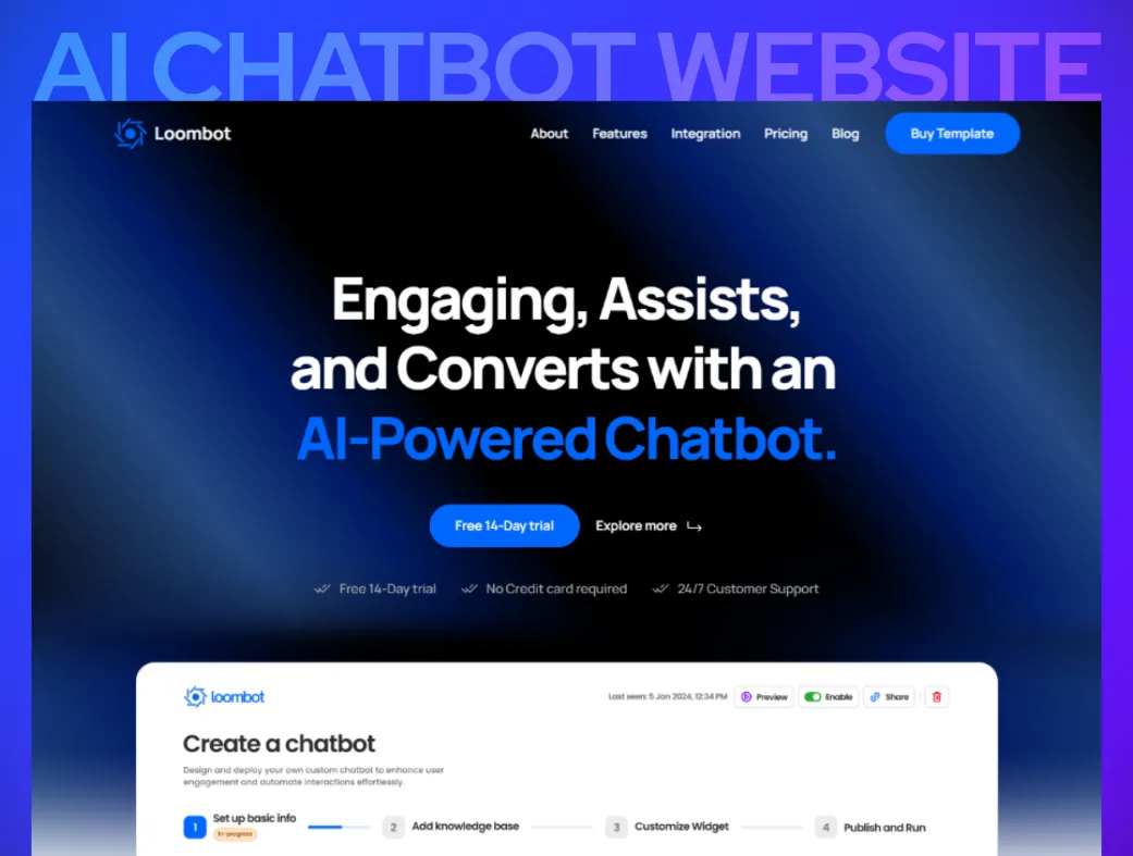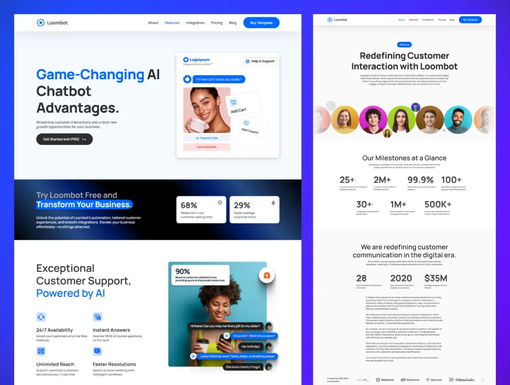 قالب وبسایت چتبات یکپارچه لومبات | LoomBot | LoomBot Template