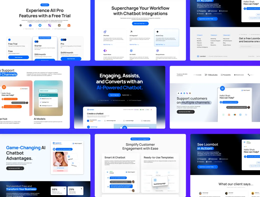 قالب LoomBot به طور خاص برای افزایش تعامل طراحی شده است. این قالب دارای یک چیدمان ساختاریافته است که باعث تشویق کاربران به تعامل بیشتر میشود. با ارائه ویژگیهای چتباتها به وضوح، شما میتوانید راهحلهای هوش مصنوعی خود را به بهترین شکل ممکن معرفی کنید.