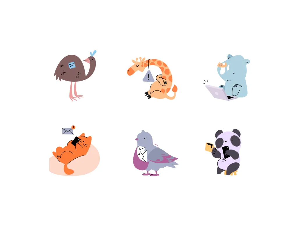 با ایلوستریشن حیوانات دوستداشتنی | Magic Animals شخصیت و احساس به پروژههای دیجیتال خود اضافه کنید. این مجموعه شامل ۲۴ تصویر وکتور حیوانات بازیگوش و expressive است که کاملاً دستساز و بدون استفاده از هوش مصنوعی طراحی شدهاند.