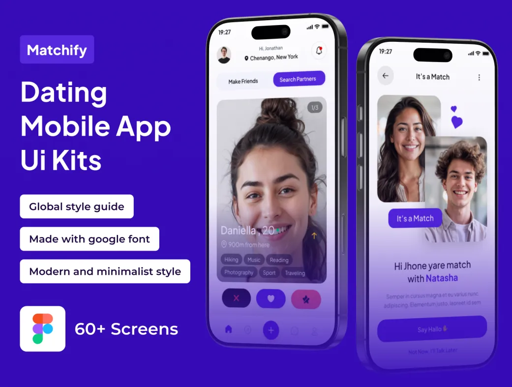 کیت UI پریمیوم دوستیابی Matchify، یک مجموعه طراحی مینیمالیستی با بیش از 60 صفحه کاربردی است که به طور خاص برای برنامههای دوستیابی طراحی شده است. این کیت با ویژگیهای منحصر به فرد خود، به شما این امکان را میدهد که به راحتی و سریعاً به پروژههای شخصی خود بپردازید و تجربه کاربری جذابی را برای کاربران فراهم کنید.